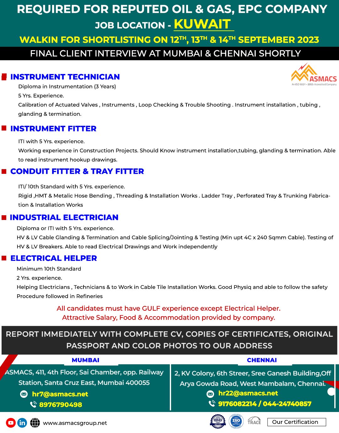 REQUIRED FOR REPUTED OIL & GAS, EPC COMPANY KUWAIT