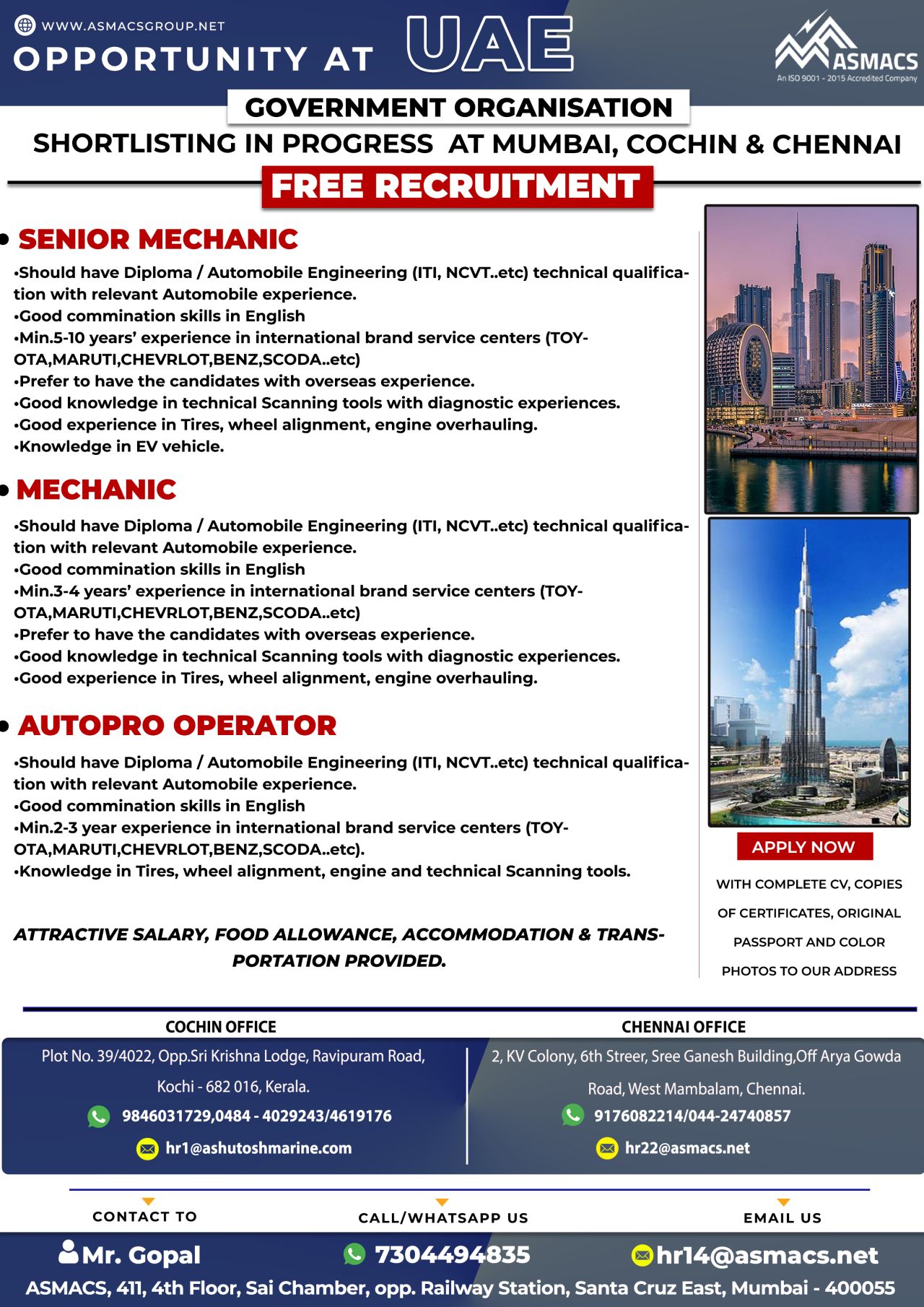 ATTRACTIVE SALARY, FOOD ALLOWANCE, ACCOMMODATION & TRANS-