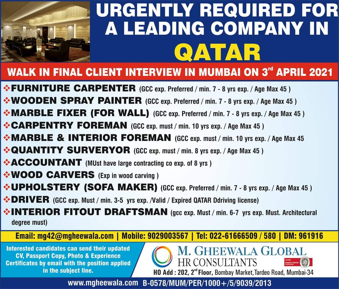 •DRIVER (GCC exp. Must / min. 3-5 yrs exp. /Valid / Expired QATAR Ddriving license)
