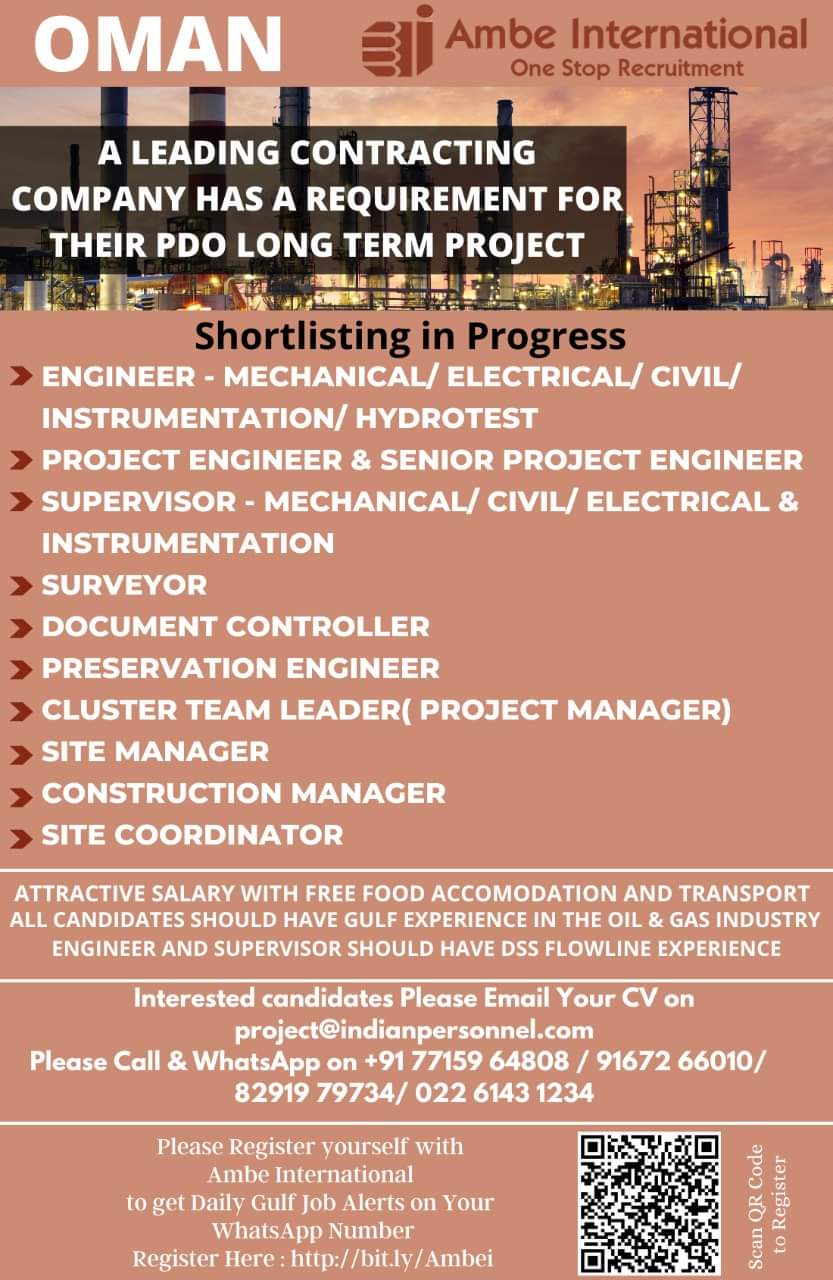 ALL CANDIDATES SHOULD HAVE GULF EXPERIENCE IN THE OIL & GAS INDUSTRY
