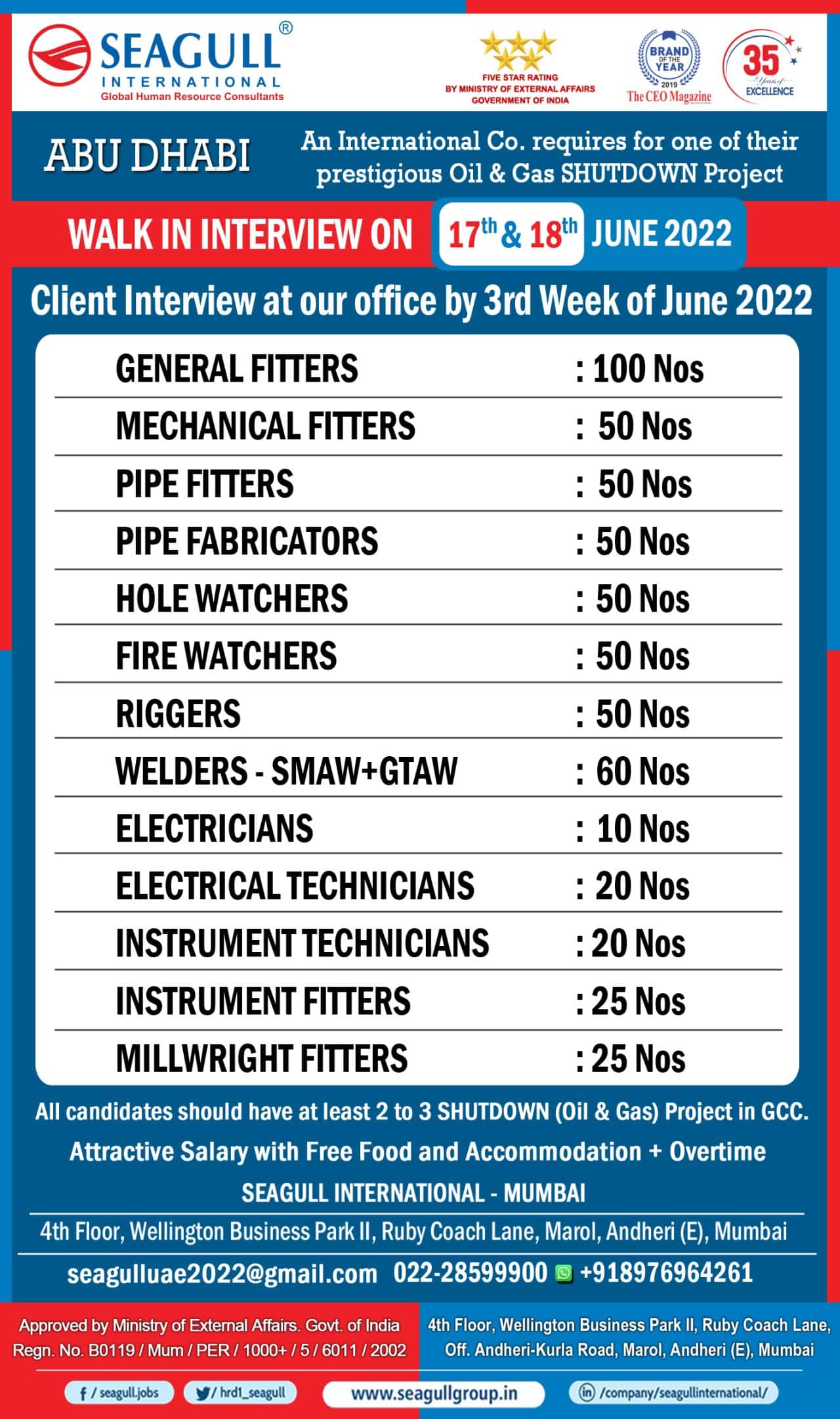 All candidates should have at least 2 to 3 SHUTDOWN (Oil & Gas) Project in GCC.