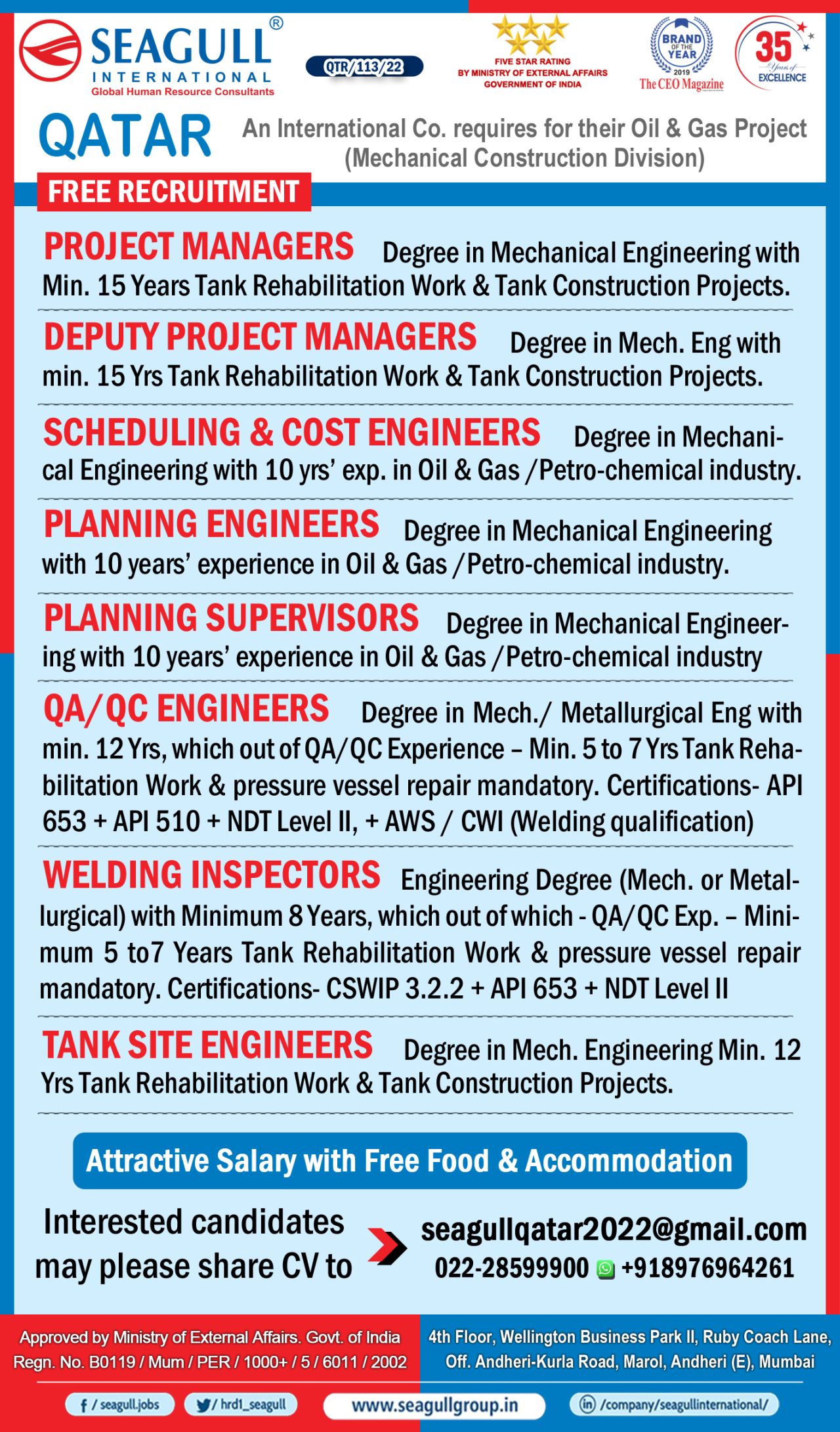 mandatory. Ceftifications- CSWIP 3.2.2 + API 653 + NDT Level II