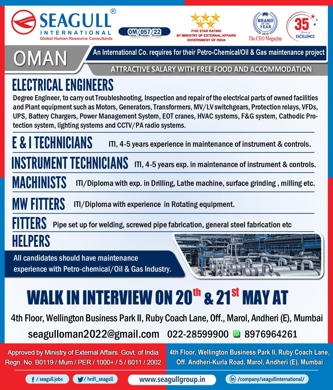 An International Co. requires for their Pietro-Chemical Oil & Gas maintenance project