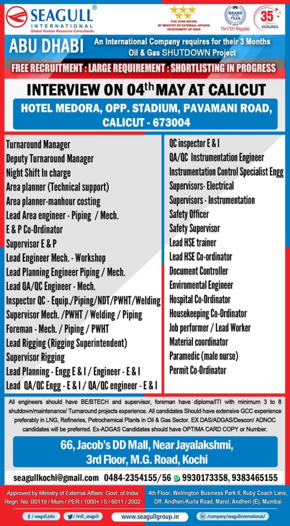 candidates will be preferred. Ex-ADGAS Candidates should have OPTIMA CARD COPY or Number.