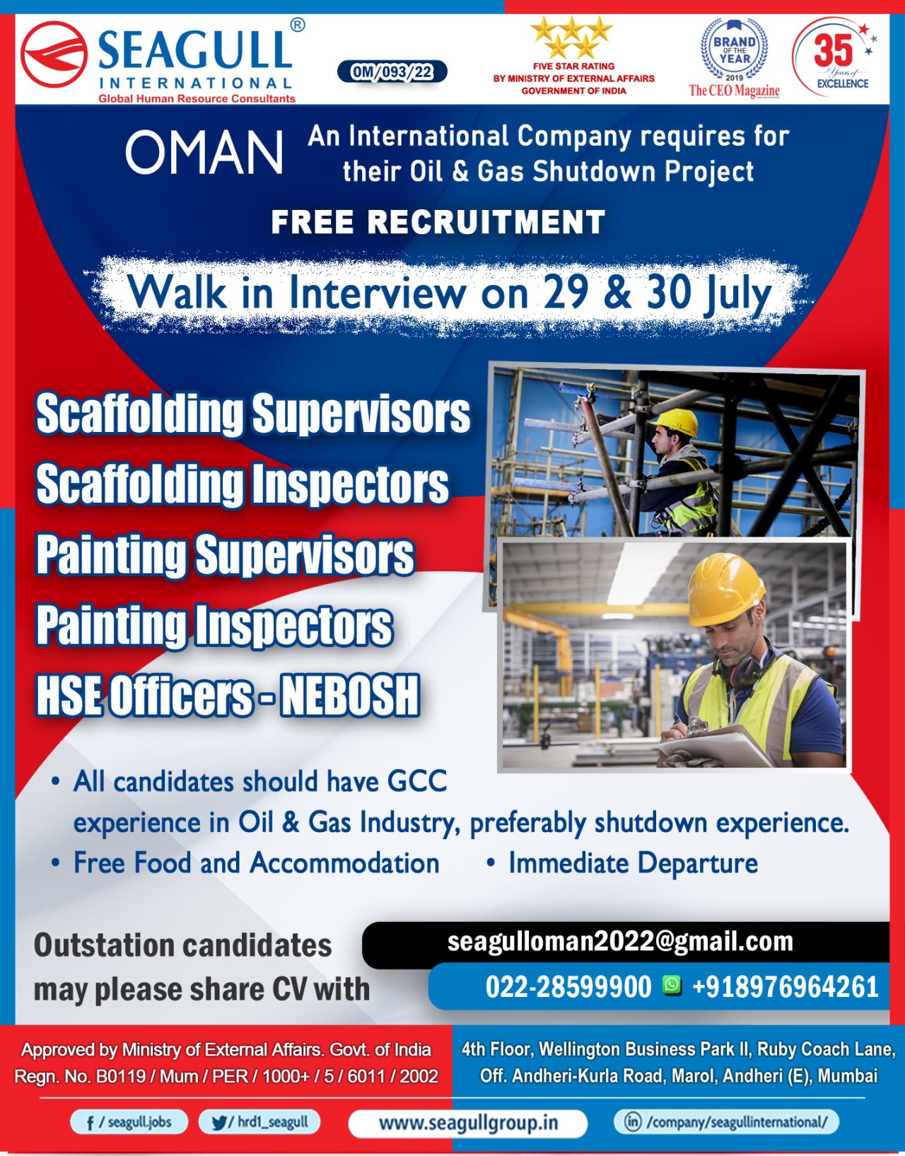 experience in Oil & Gas Industry, preferably shutdown experience.