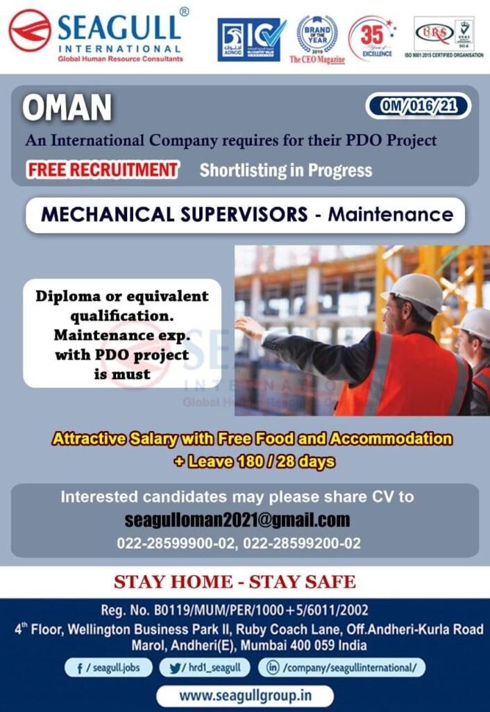 MECHANICAL SUPERVISORS – Maintenance