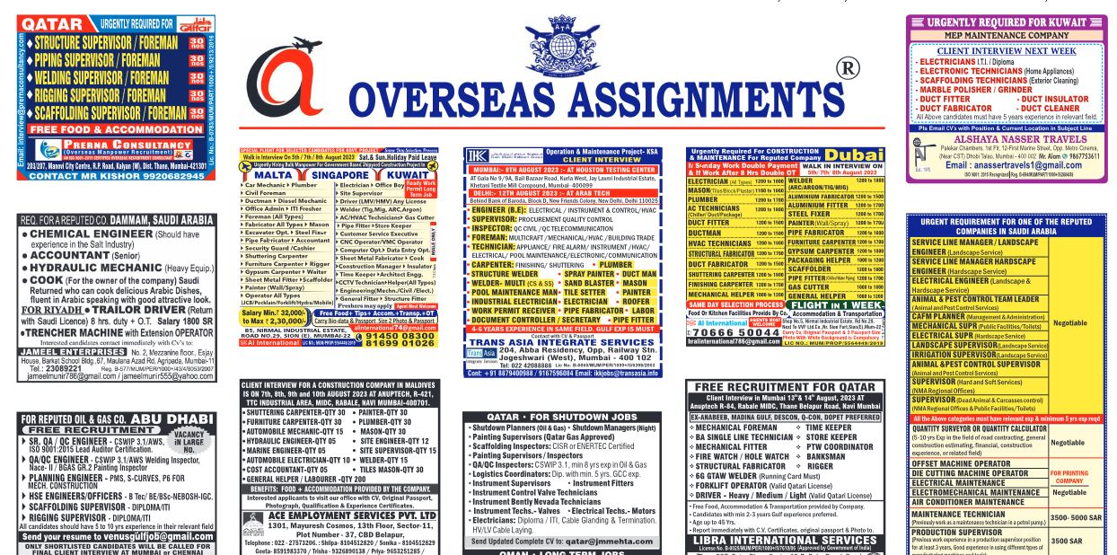 Over the years, Assignment Abroad Times has helped numerous Indians find work abroad and start a new life in a foreign land. The paper covers a wide range of job category.