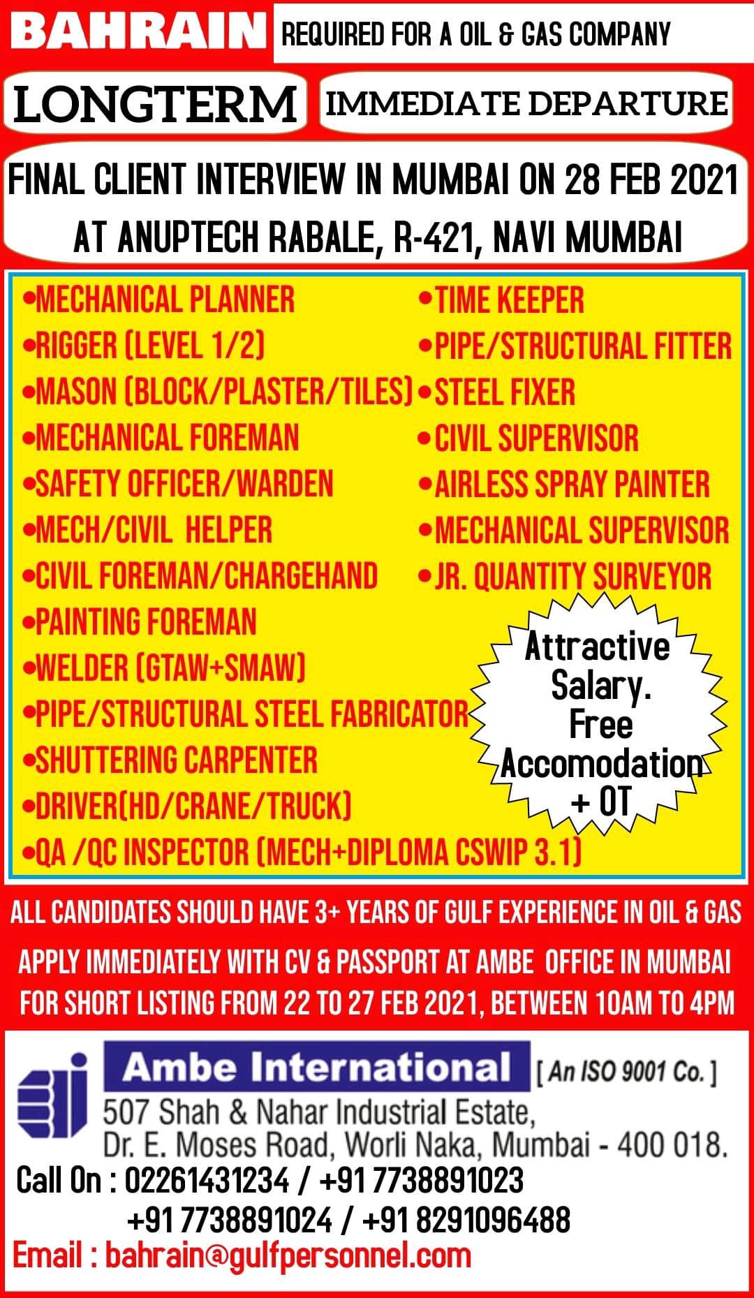 BAHRAIN REQUIRED FOR A OIL & GAS COMPANY