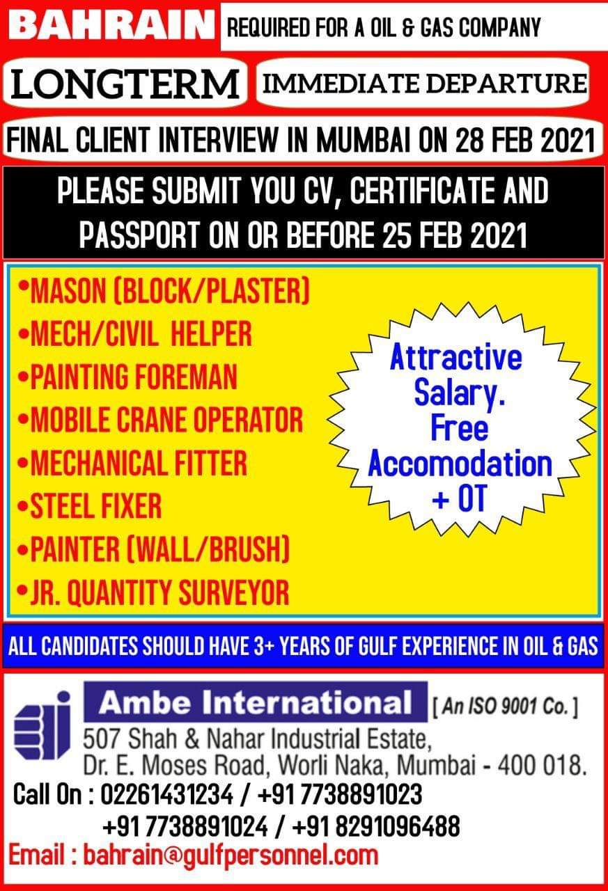 ALL CANDIDATES SHOULD HAVE 3+ YEARS OF GULF EXPERIENCE IN OIL GAS