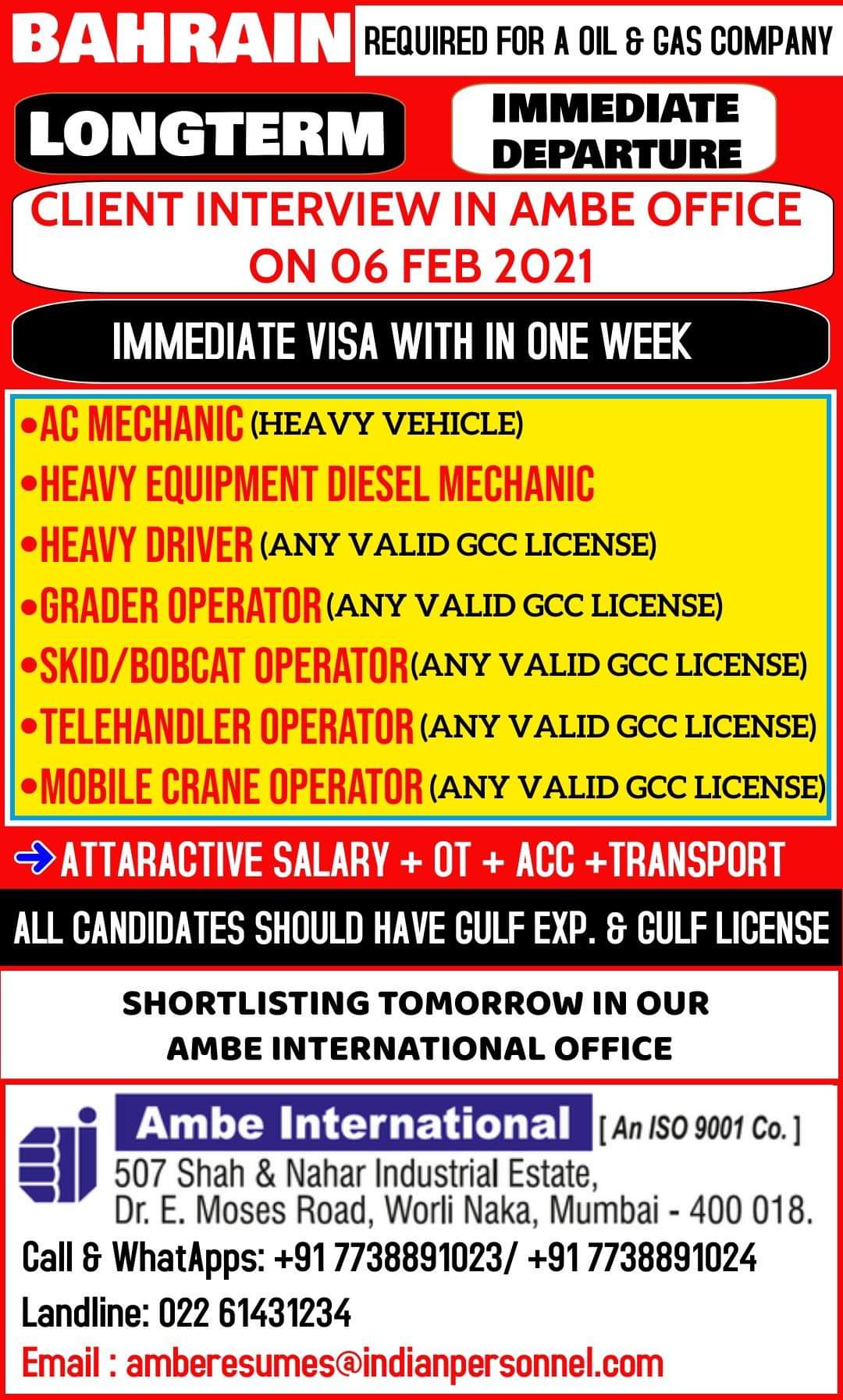 +ATTARACTIVE SALARY + OT + Acc +TRANSPORT