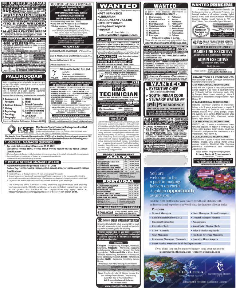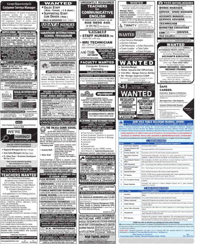 There are a lot of vacancies published in today’s e-paper. You may view & download those papers. Find your desire …