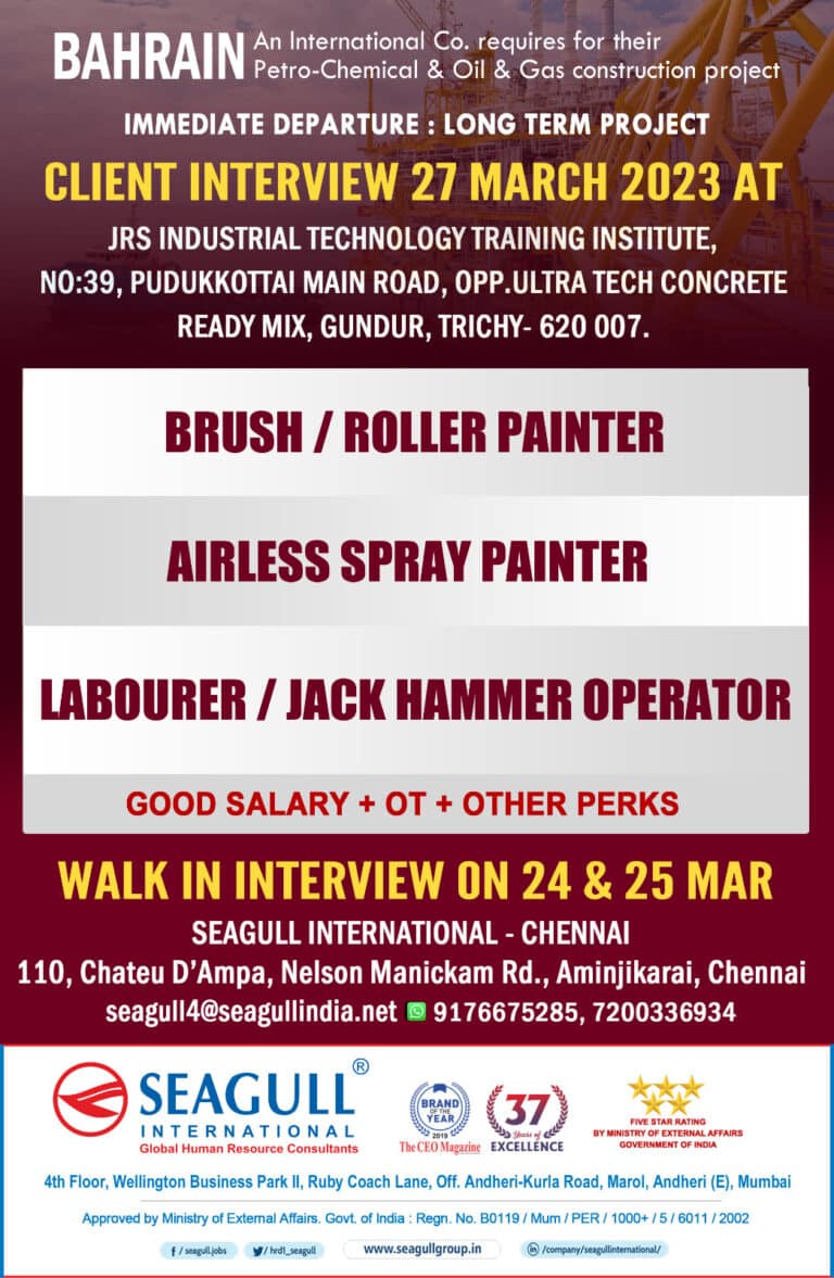 An International Co. requires for theirBAHRAIN Petro-Chemical & Oil & Gas construction projectIMMEDIATE DEPARTURE : LONG TERM PROJECTCLIENT INTERVIEW 27 …