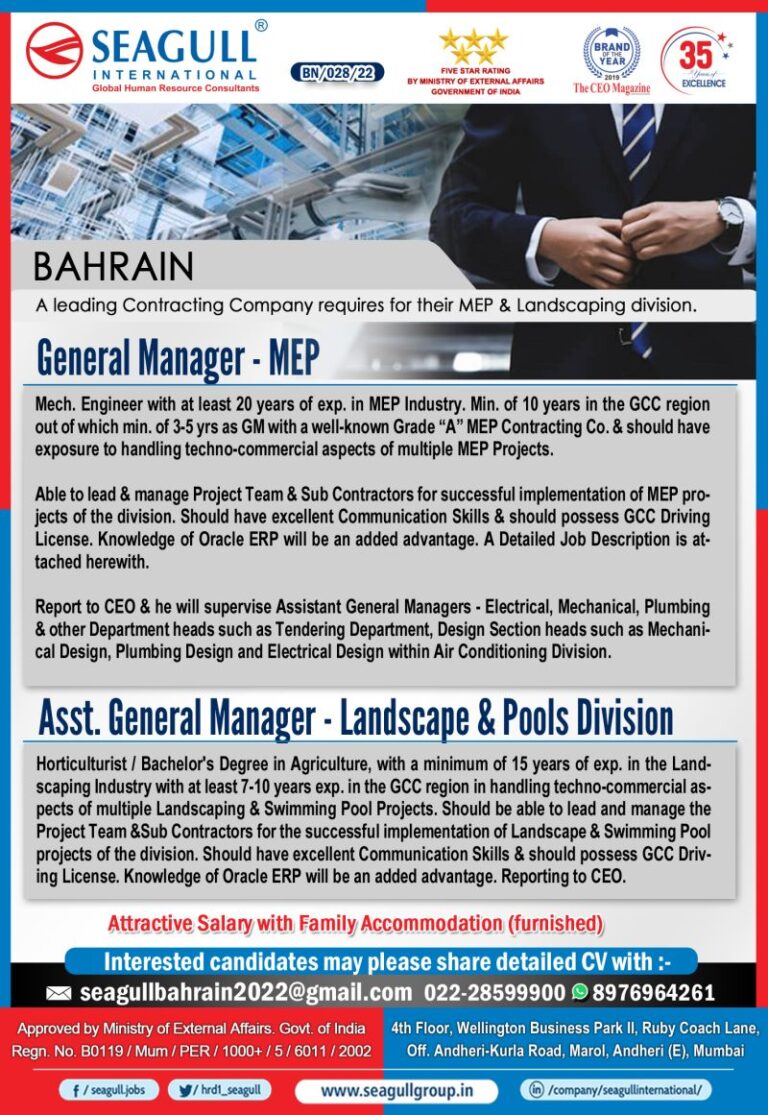 A Leading Facility Maintenance Company is BAHRAINlooking out for their commercial ProjectsWALK IN INTERVIEW ON 16 AUGseagullbahrain2022@gmaiI.com022-28599900 • +918976964261FUEL HANDLER(10 …