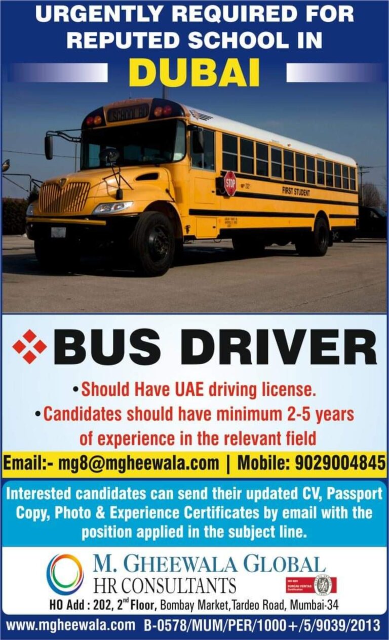 URGENTLY REQUIRED FORREPUTED SCHOOL INDUBAIBUS DRIVER•Should Have UAE driving license.•Candidates should have minimum 2-5 yearsof experience in the relevant fieldEmail:- …