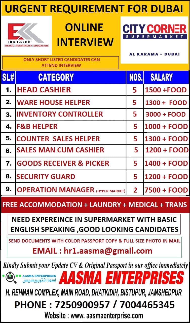 URGENT REQUIREMENT FOR DUBAIONLINE CITY CORNEREKK GROUPINTERVIEWSUP E R N” ARK ETAL KARAMA – DUBAIONLY SHORT LISTED CANDIDATES CANATTEND INTERVIEWCATEGORYHEAD …