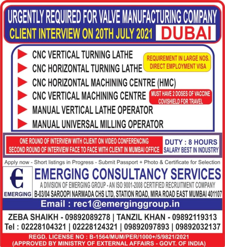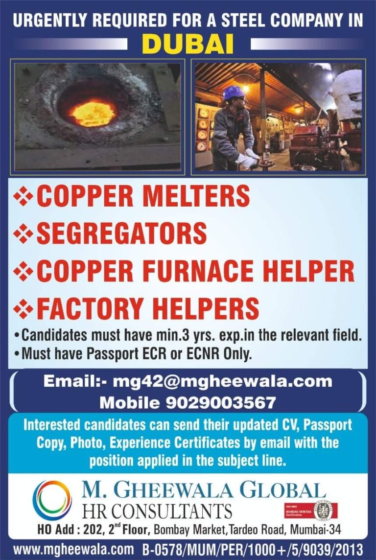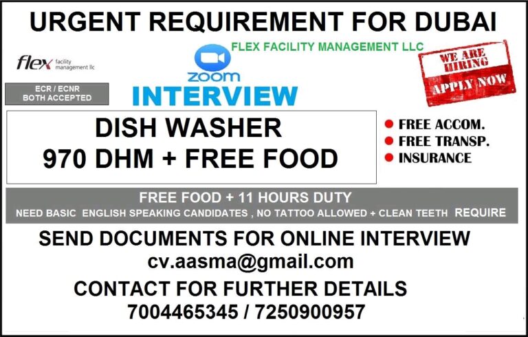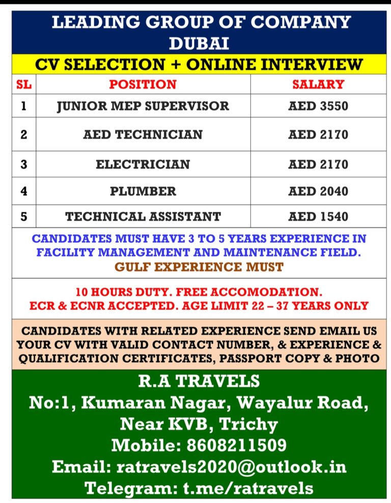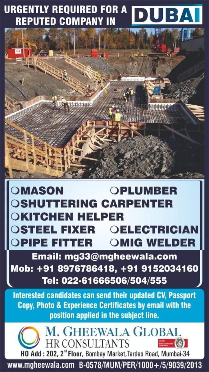 URGENTLY REQUIRED FOR REPUTED COMPANY IN DUBAI