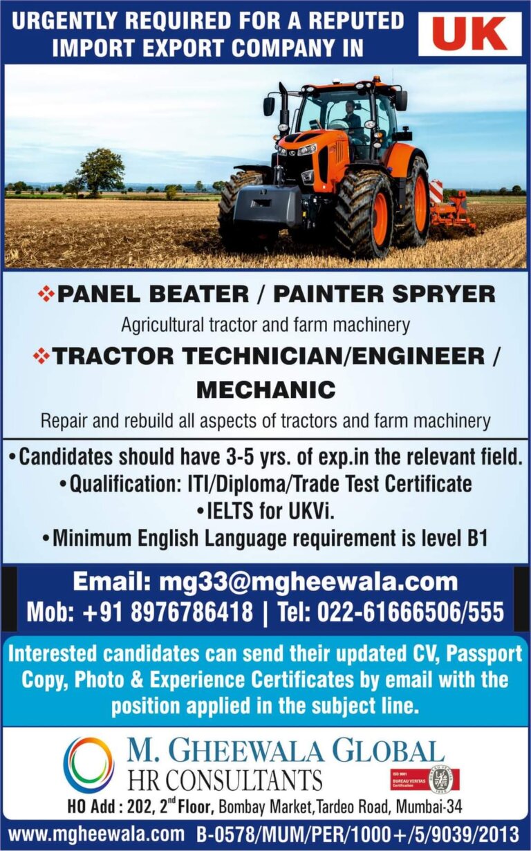 URGENTLY REQUIRED FOR A REPUTEDIMPORT EXPORT COMPANY INPANEL BEATER / PAINTER SPRYERAgricultural tractor and farm machineryTRACTOR TECHNICIAN/ENGINEER /MECHANICRepair and rebuild …