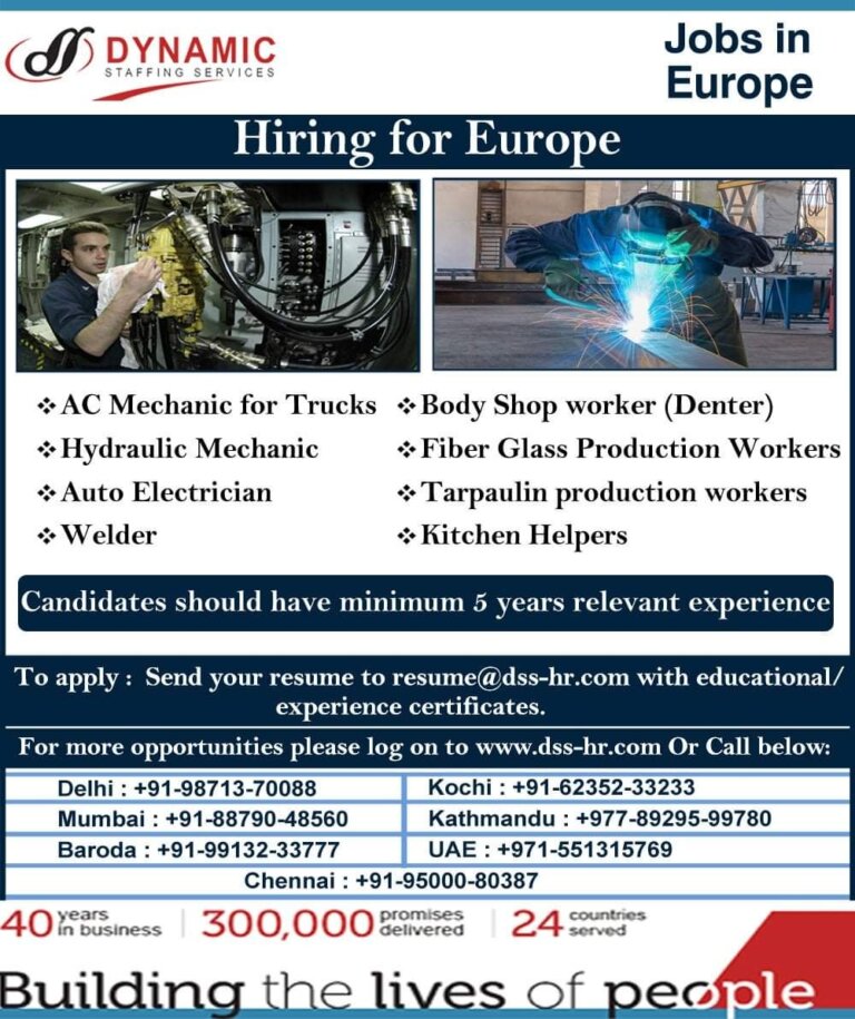 Jobs in EuropeHiring for Europe•:•AC Mechanic for Trucks + Body Shop worker (Denter)Hydraulic Mechanic Auto Electrician Welder Fiber Glass Production …