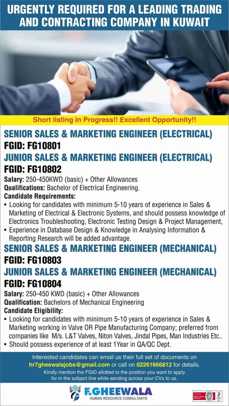URGENTLY REQUIRED FOR A LEADING TRADINGAND CONTRACTING COMPANY IN KUWAITShort listing in Progress!! Excellent Opportunity!!SENIOR SALES & MARKETING ENGINEER (ELECTRICAL)FGID: …