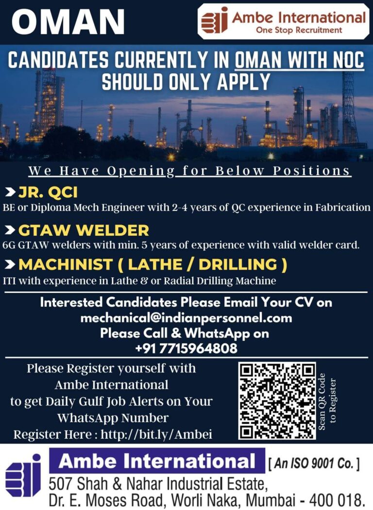 Oman – Shutdown (3 Months)Walk-In Final Interview: 15-July (Spot Selection)Free Free Food & Gulf Experience DepartureRecruitment Accommodation Preferred In 30 …