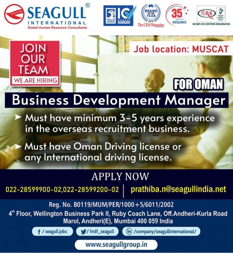 WE ARE HIRINGFOR OMANBusiness Development ManagerMust have minimum 3-5 years experiencein the overseas recruitment business.Must have Oman Driving license orany …