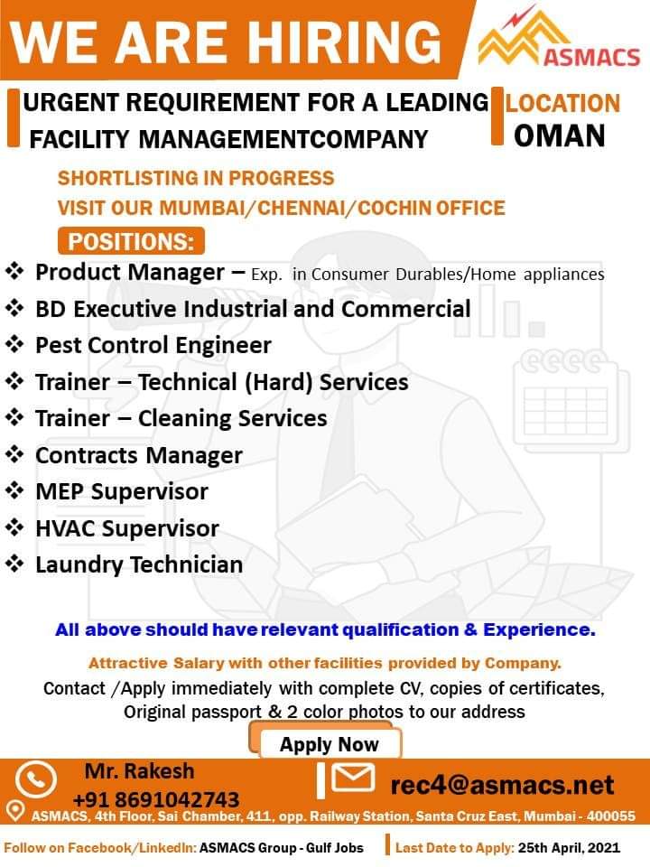 URGENT REQUIREMENT FOR A LEADINGLOCATIONFACILITY MANAGEMENT COMPANYSHORTLISTING IN PROGRESSOMANVISIT OUR MUMBAI/CHENNAI/COCHIN OFFICEPOSITIONS:Product Manager — EXP. in Consumer Durables/Home appliancesBD Executive …