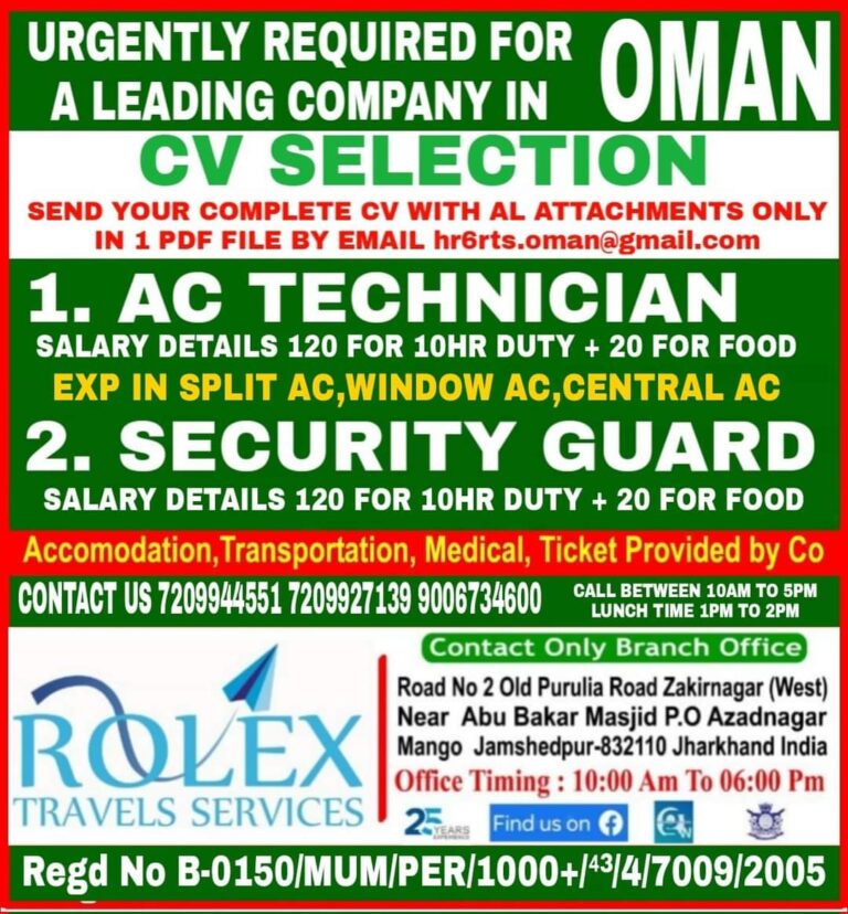 OMANURGENTLY REQUIRED FORA LEADING COMPANY INCV SELECTIONSEND YOUR COMPLETE CV WITH AL ATTACHMENTS ONLYIN 1 PDF FILE BY EMAIL hr6rts.oman@gmail.com …