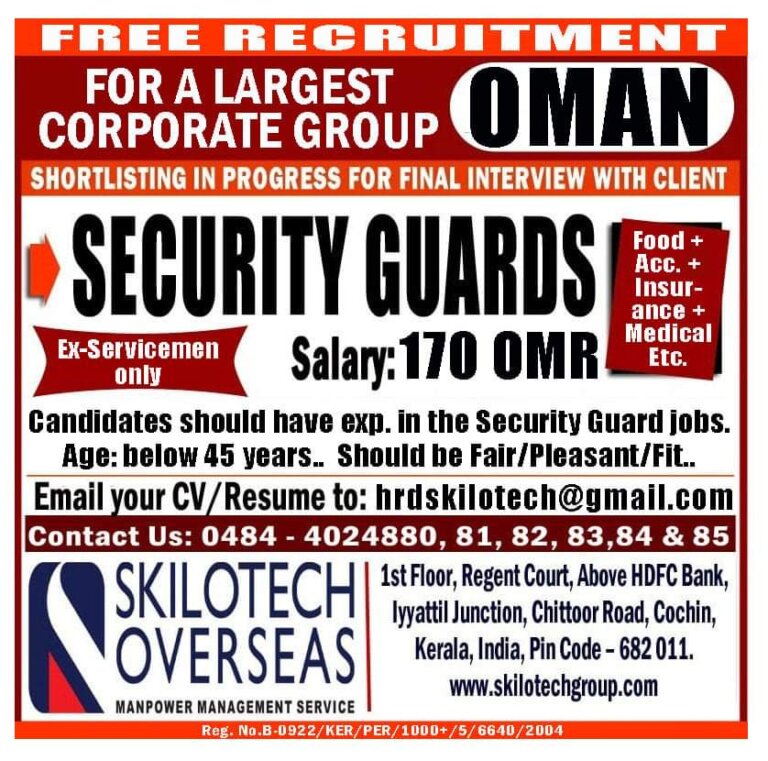 OMAN FOR A LARGESTCORPORATE GROUPCandidates should haue exp. in the Security Guard jobs.Age: below 45 years.. Should be Fair/Pleasant/Fit..Email ourCV …