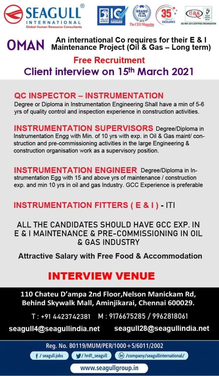 CEO An international Co requires for their E & IOMAN Maintenance Project (Oil & Gas — Long term)Free RecruitmentClient interview …
