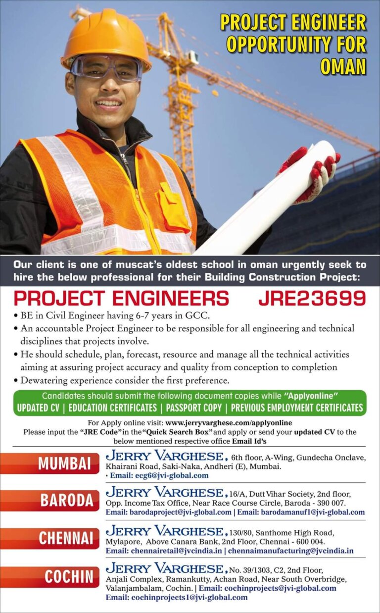 PROJECT ENGINEER OMANOur client is one of muscat’s oldest school in oman urgently seek tohire the below professional for their …