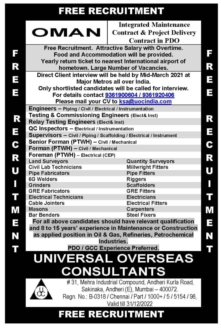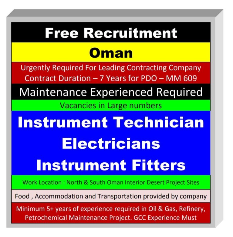 Free Recruitment OmanUrgently Required For Leading Contracting CompanyContract Duration — 7 Years for PDO — MM 609Maintenance Experienced RequiredVacancies in …