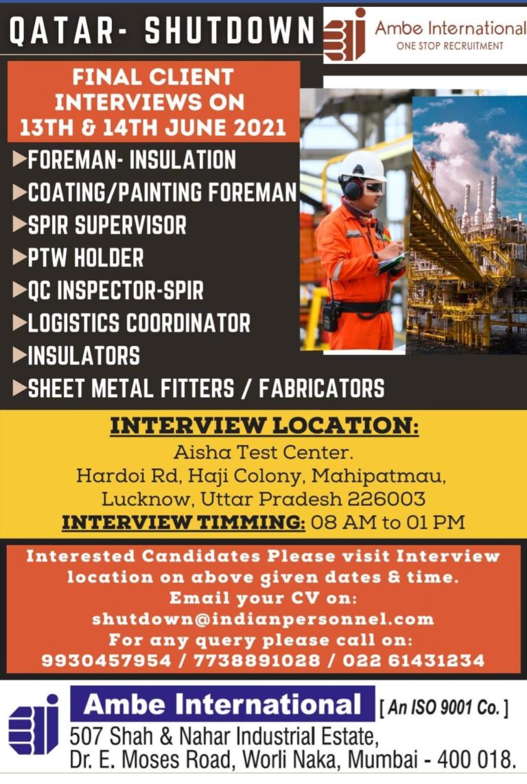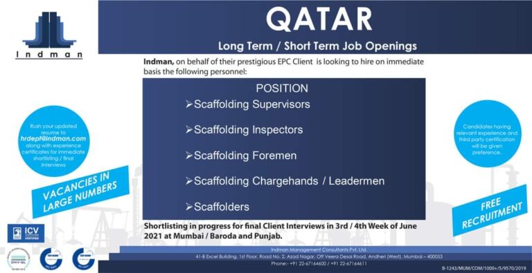 LARGE REQUIREMENT FOR ALEADING MEP COMPANYASMACSLOCATION QATARSHORTLISTING IN PROGRESS/ONLINE INTERVIEW SHORTLYPOSITIONS:-*FURNITURE CARPENTER*SOFA MAKER/UPHOLESTER*GYPSUM INSTALLER*GYPSUM CARPENTER*SALES ENGINEER (INSULATION/DUCTING MATERIAL)ALL SHOULD HAVE …