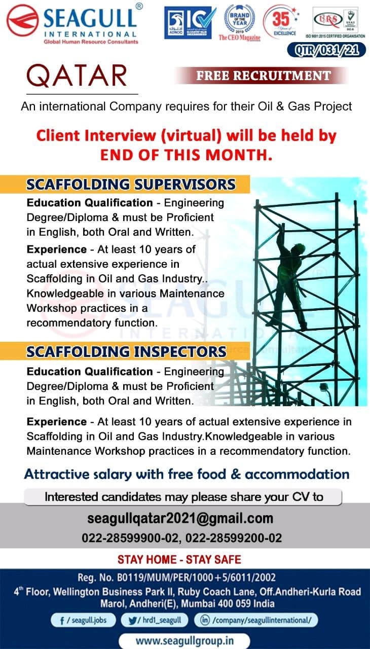 QATARFREE RECRUITMENT IAn international Company requires for their Oil & Gas ProjectClient Interview (virtual) will be held byEND OF THIS …