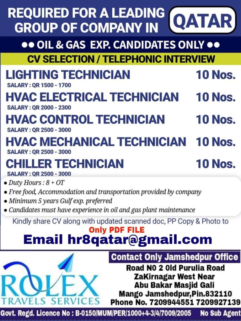 REQUIRED FOR A LEADING GROUP OF COMPANY IN ••OIL & GAS EXP. CANDIDATES ONLYCV SELECTION / TELEPHONIC INTERVIEW LIGHTING TECHNICIAN10 …