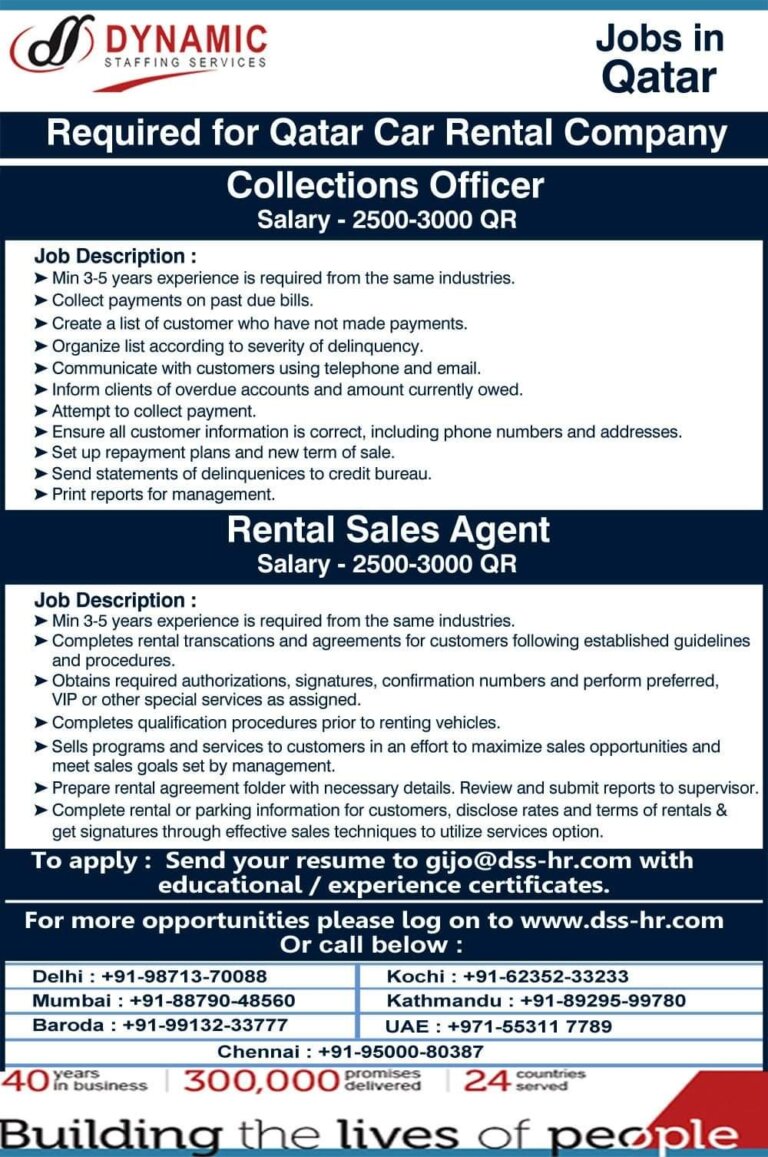 Jobs in QatarRequired for Qatar Car Rental CompanyCollections Officersalary – 2500-3000 QRJob Description :Min 3-5 years experience is required from …