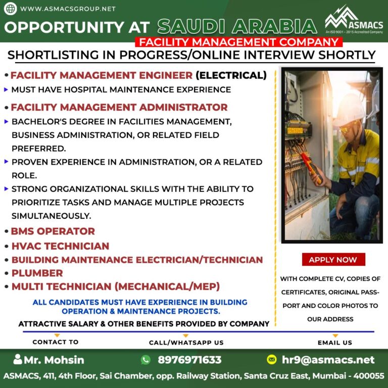 OPPORTUNITY AT SAUDI ARABIA FACILITY MANAGEMENT COMPANYSHORTLISTING IN PROGRESS/ONLINE INTERVIEW SHORTLY Telegram Group Join Now
