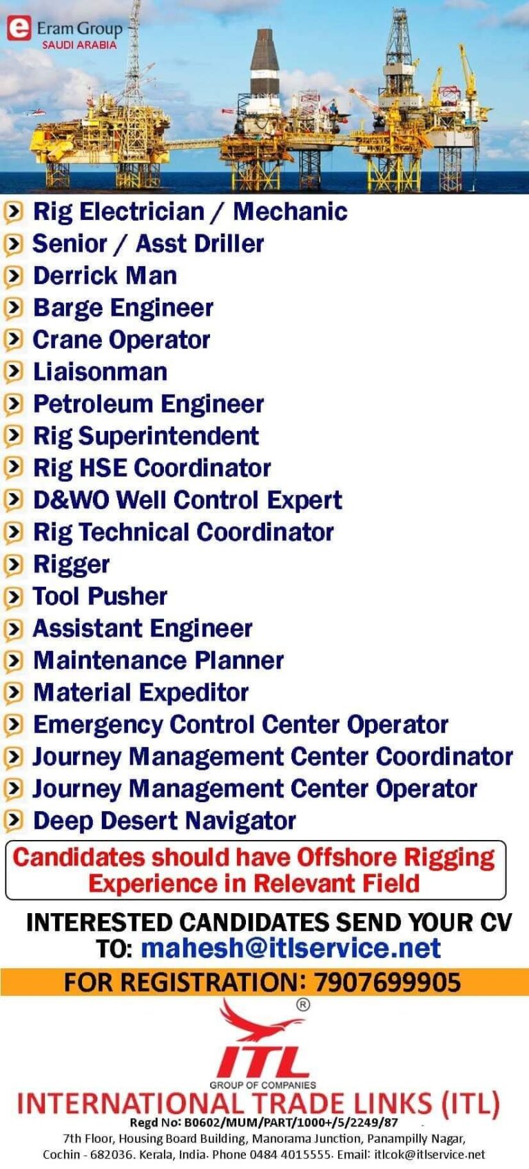 Rig Electrician / MechanicSenior / Asst DrillerDerrick ManBarge EngineerCrane OperatorLiaisonmanPetroleum EngineerRig SuperintendentRig HSE CoordinatorD&WO Well Control ExpertRig Technical CoordinatorRiggerTool PusherAssistant …