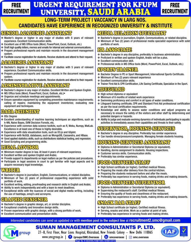 URGENT REQUIREMENT FOR KFUPMUNIVERSITY, SAUDI ARABIARECRUITMENTRECRUITMENTLONG-TERM PROJECT I VACCANCY IN LARG NOS.CANDIDATES HAVE EXPERIENCE IN RECOGNIZED UNIVERSITY & INSTITUTEACCESS CONTROL …