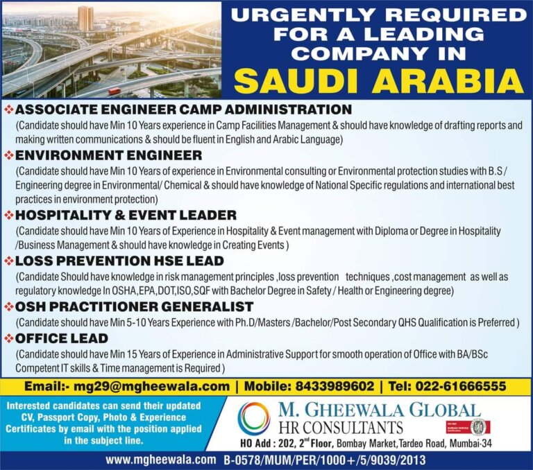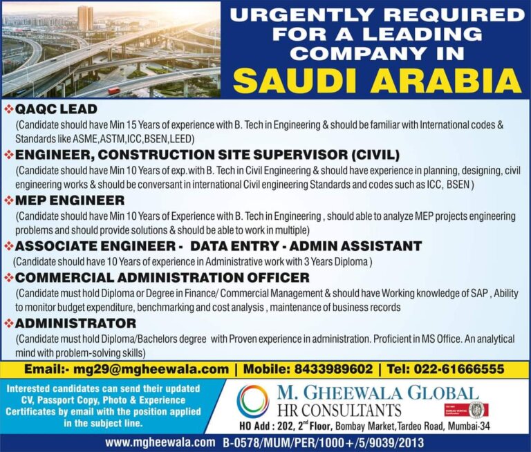 URGENTLY REQUIRED FOR SAUDI ARABIA