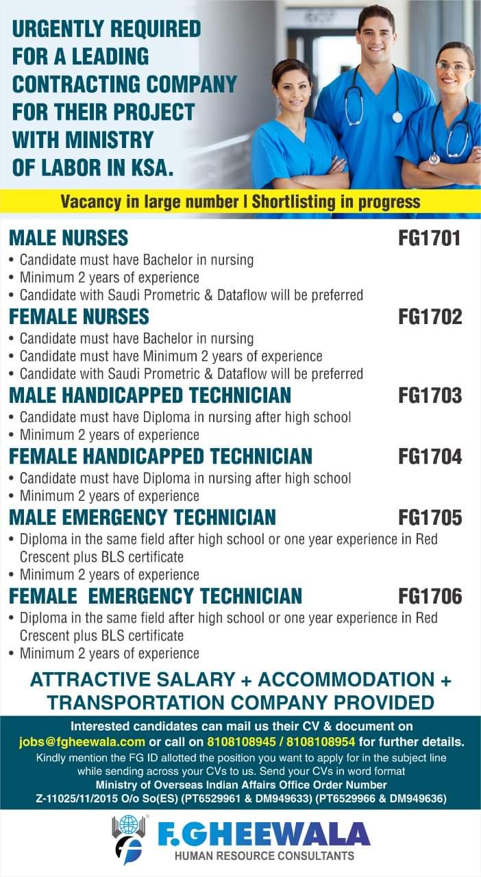 Interested candidates can send their Updated resume at fgheewalasaudijobs@gmail.com or call us on 8108108947 Kindly mention the FGID allotted to …