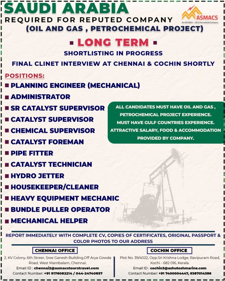 SAUDI ARABIAREQUIRED FOR REPUTED COMPANYAn ISO 9001 – 2015 Accredited Company(OIL AND GAS, PETROCHEMICAL PROJECT) Telegram Group Join Now