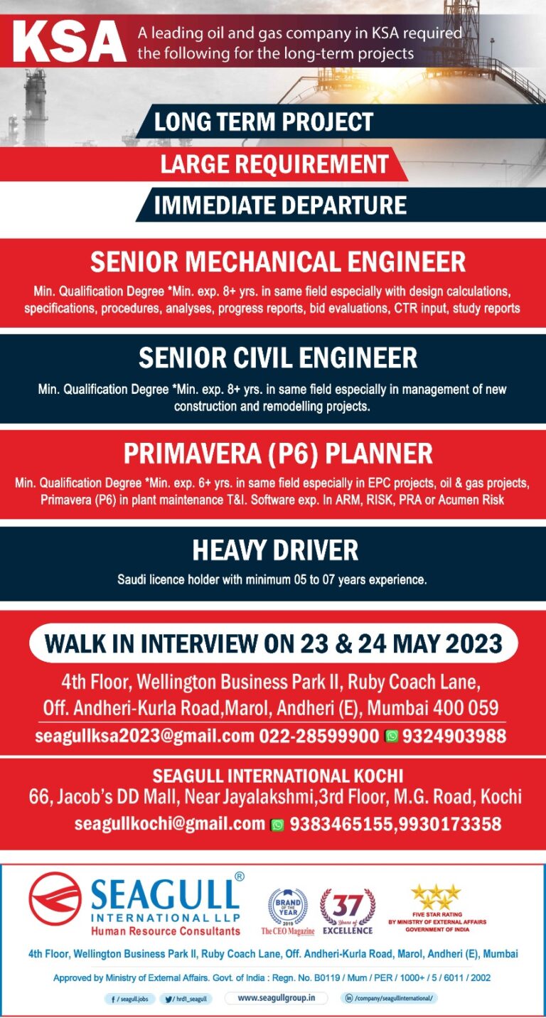 KSAA leading oil and gas company in KSA required the followingfor the long-term projectsLONGTERM PROJECT LARGE REQUIREMENTIMMEDIATE DEPARTURESENIOR MECHANICAL ENGINEERMin. …