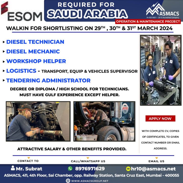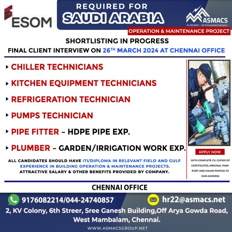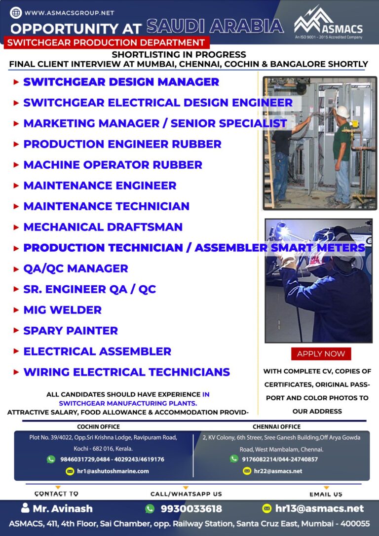 OPPORTUNITY AT SAUDI ARABIA SWITCHGEAR PRODUCTION DEPARTMENTSHORTLISTING IN PROGRESSASMACSAn ISO 9001-2015 Accredited CompanyFINAL CLIENT INTERVIEW AT MUMBAI, CHENNAI, COCHIN & …