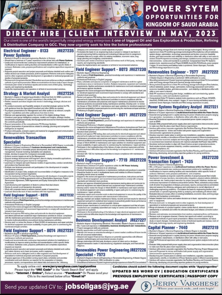 POWER SYSTEM OPPORTUNITIES FOR KINGDOM OF SAUDI ARABIADIRECT HIRE | CLIENT INTERVIEW IN MAY, 2023Our client is one of the …