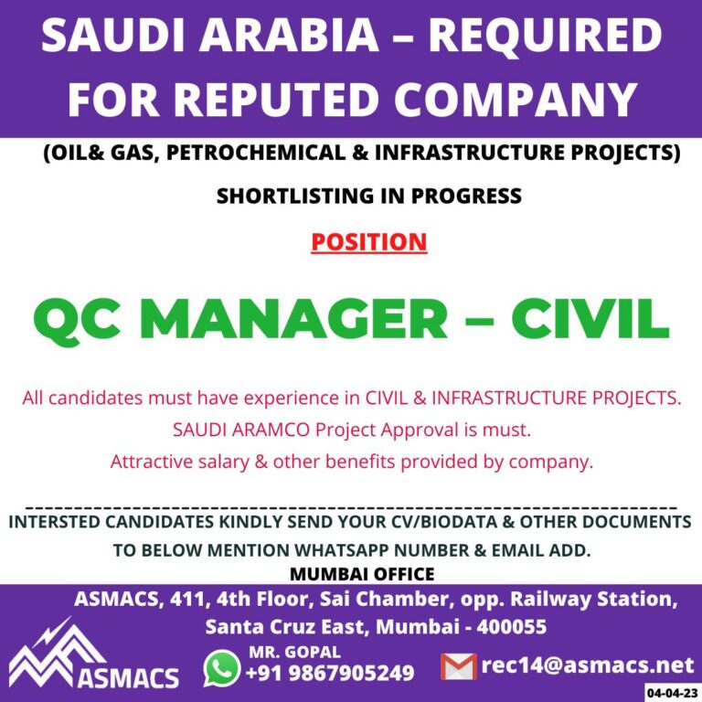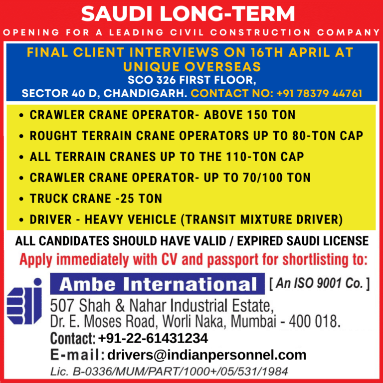 SAUDI LONG-TERMOPENING FOR A LEADING CIVIL CONSTRUCTION COMPANYFINAL CLIENT INTERVIEWS ON 16TH APRIL ATUNIQUE OVERSEASSCO 326 FIRST FLOOR,SECTOR 40 D, …