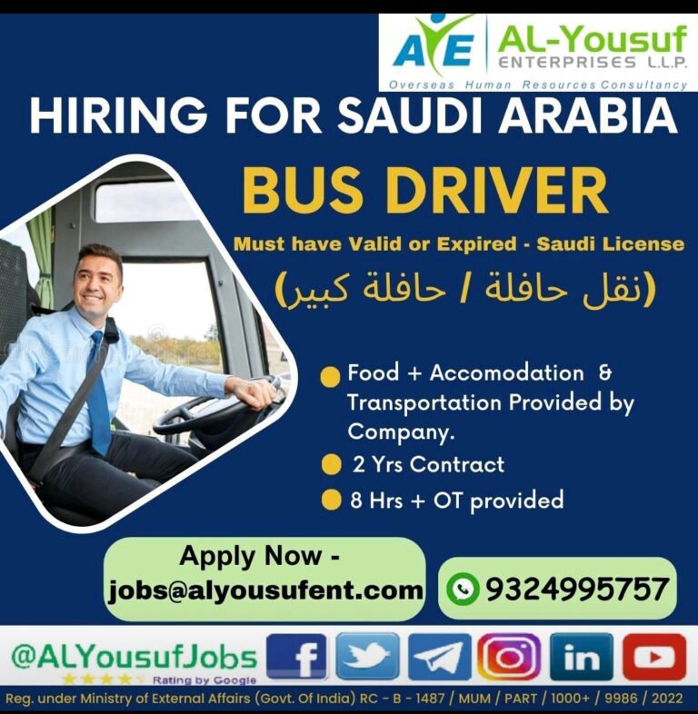 HIRING FOR SAUDI ARABIABUS DRIVERMust have Valid or Expired – Saudi LicenseFood + Accomodation &Transportation Provided byCompany.2 Yrs Contract8 Hrs …
