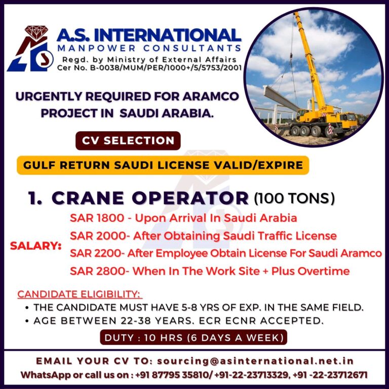 URGENTLY REQUIRED FOR ARAMCOPROJECT IN SAUDI ARABIA.CV SELECTIONGULF RETURN SAUDI LICENSE VALID/EXPIRE