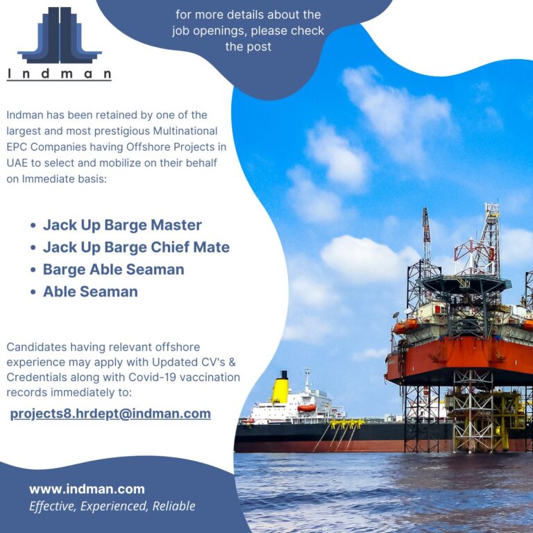 EPC Companies having Offshore Projects inUAE to select and mobilize on their behalfon Immediate basis:• Jack Up Barge Master• Jack …