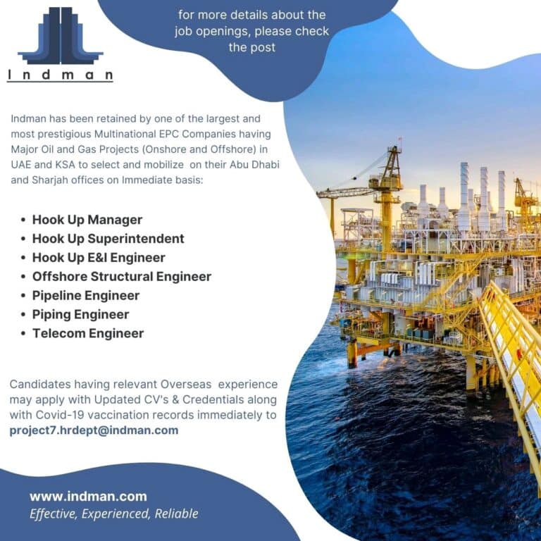 • Hook Up Manager• Hook Up Superintendent• Hook Up Engineer• Offshore Structural Engineer• Pipeline Engineer• Piping Engineer• Telecom EngineerCandidates having …