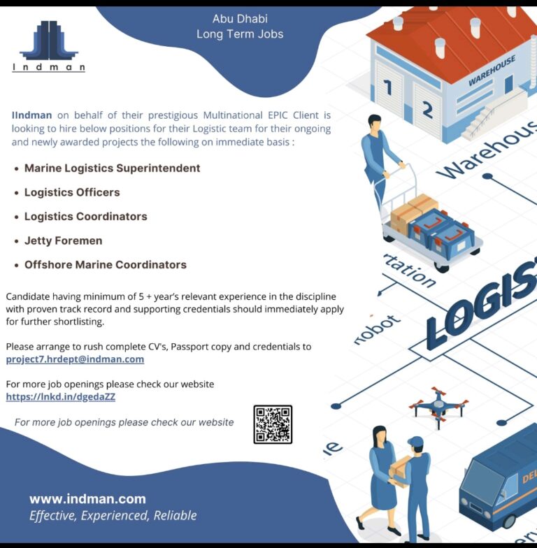 Abu DhabiLong Term JobsIlndman on behalf of their prestigious Multinational EPIC Client islooking to hire below positions for their Logistic …